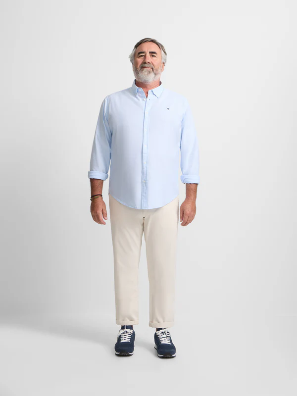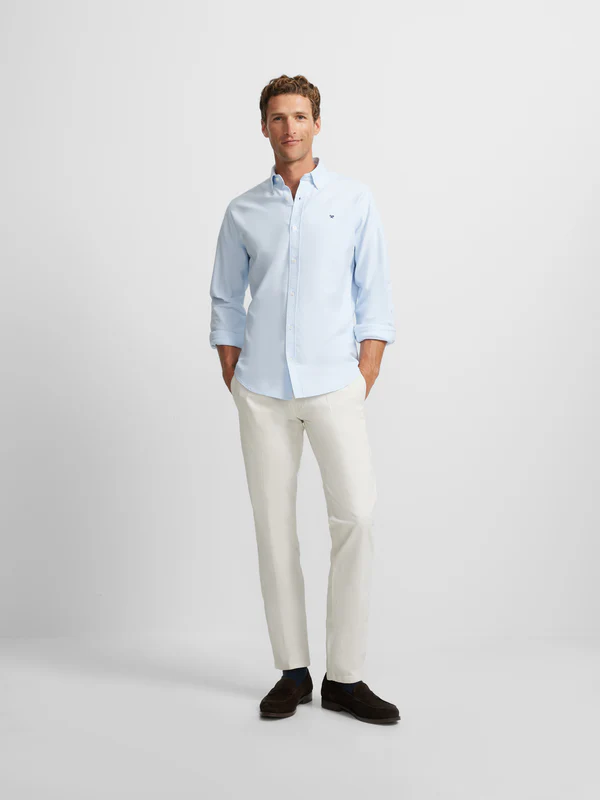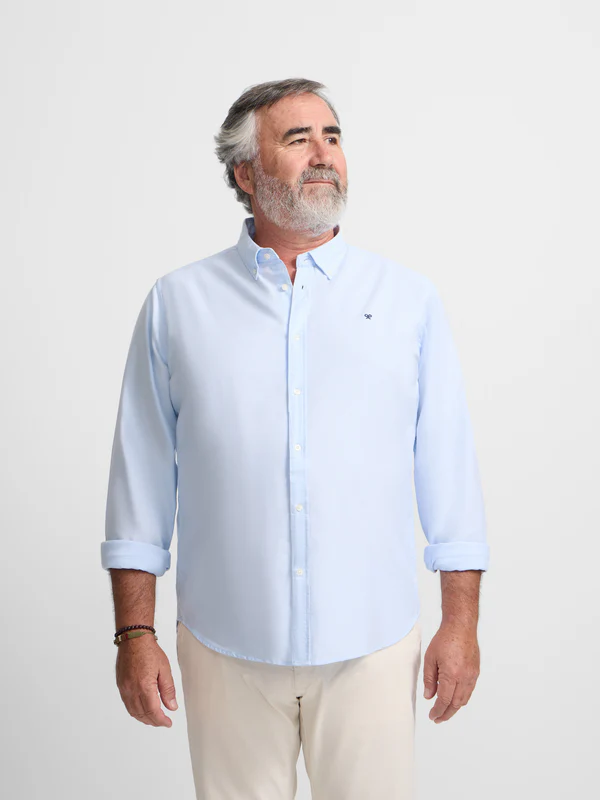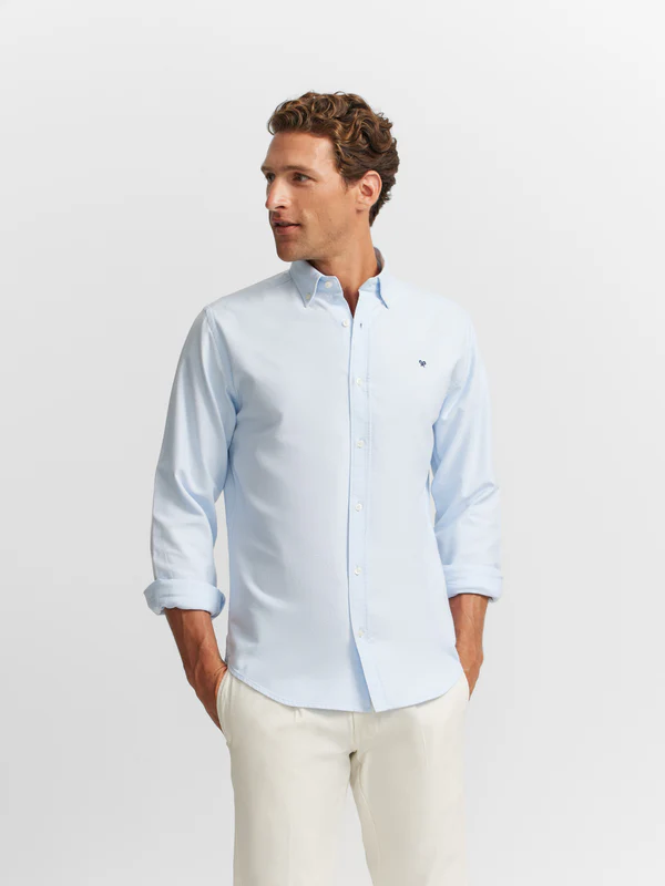 Camisa oxford confeccionada en 100% algodón de corte Slim fit. Presenta cuello button down, cierre con botones personalizados y manga larga de puño con botones. Cuenta con raquetas bordadas en el torso.