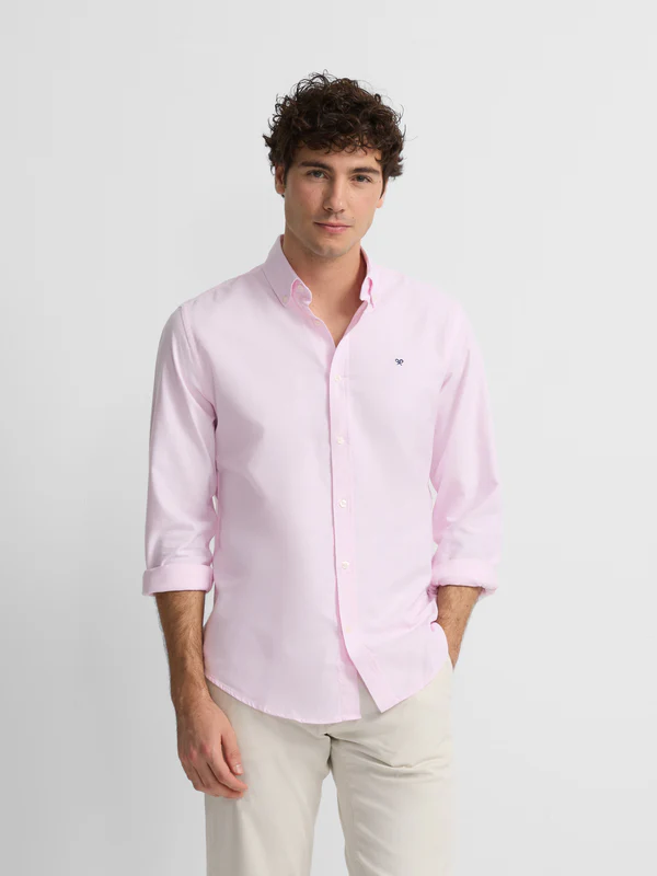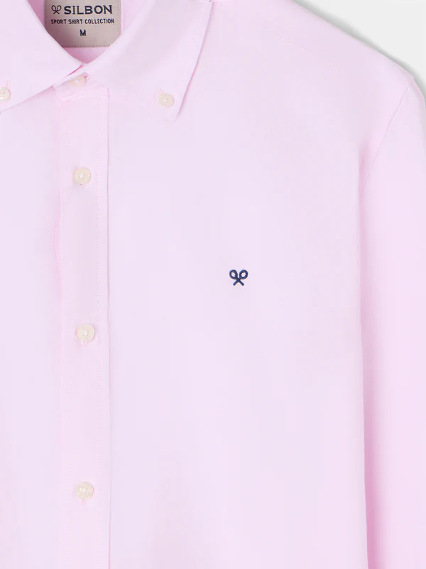 Camisa oxford confeccionada en 100% algodón de corte Slim fit. Presenta cuello button down, cierre con botones personalizados y manga larga de puño con botones. Cuenta con raquetas bordadas en el torso.