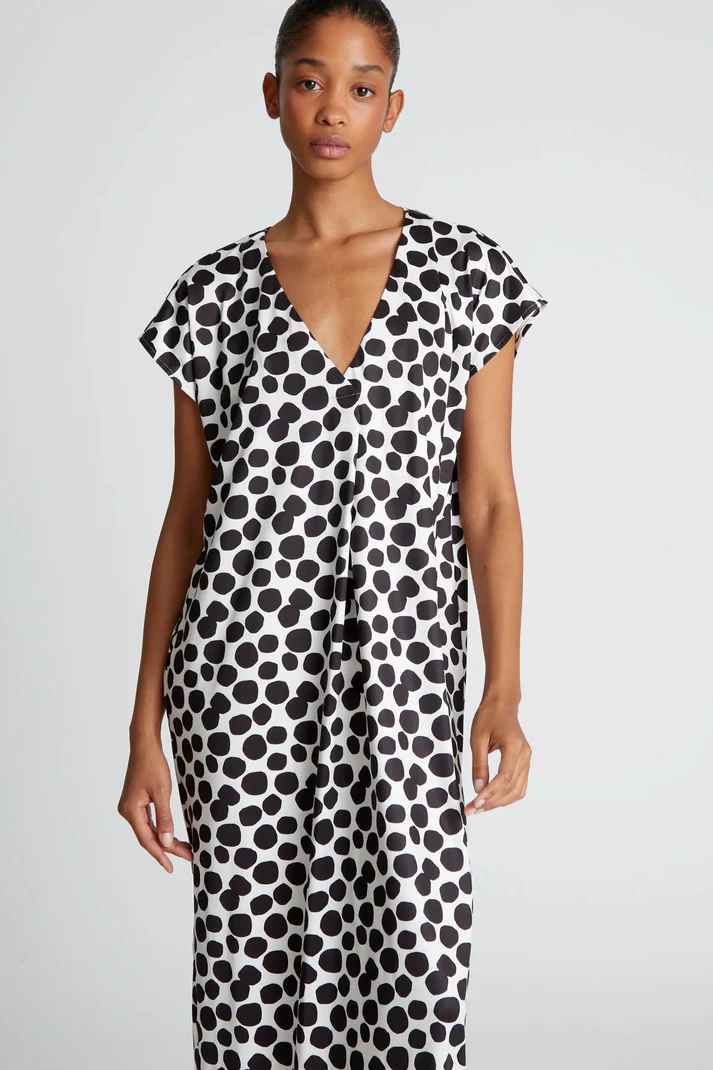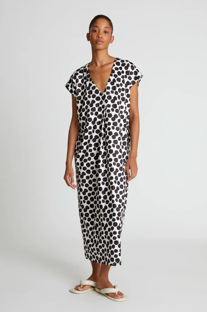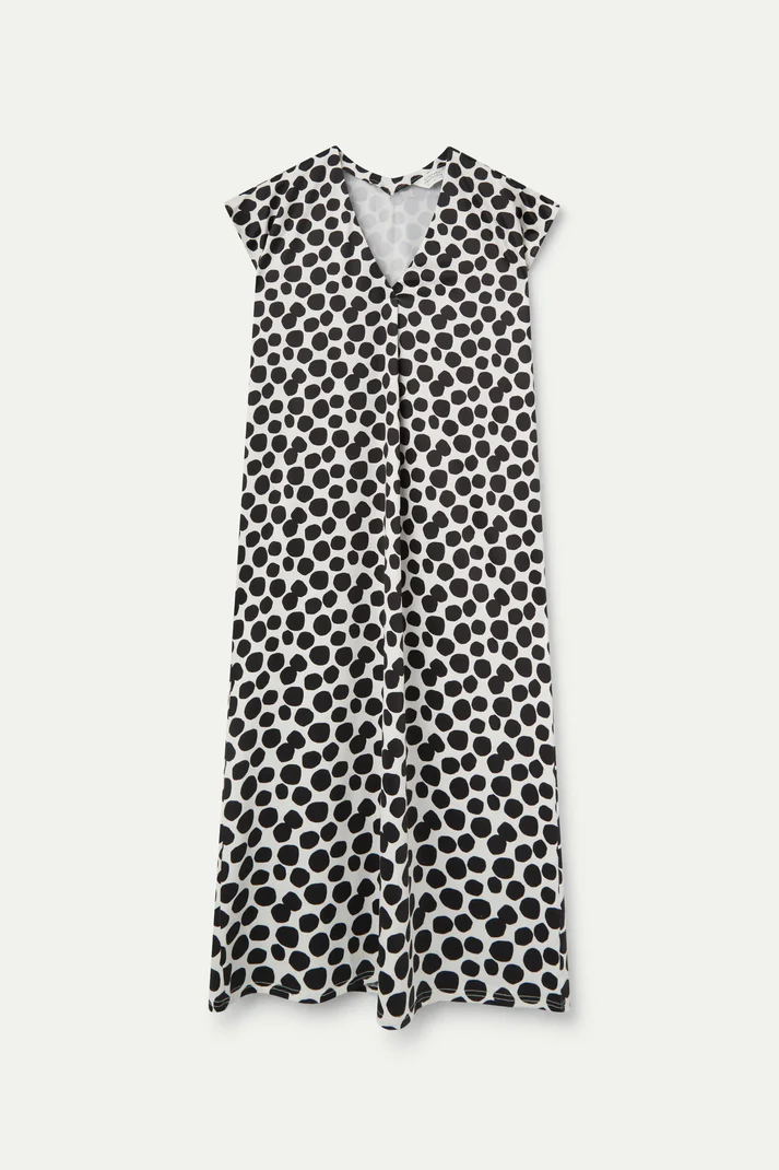 Kaftan largo con estampado geométrico Terrazo. Con escote pico y sin mangas.