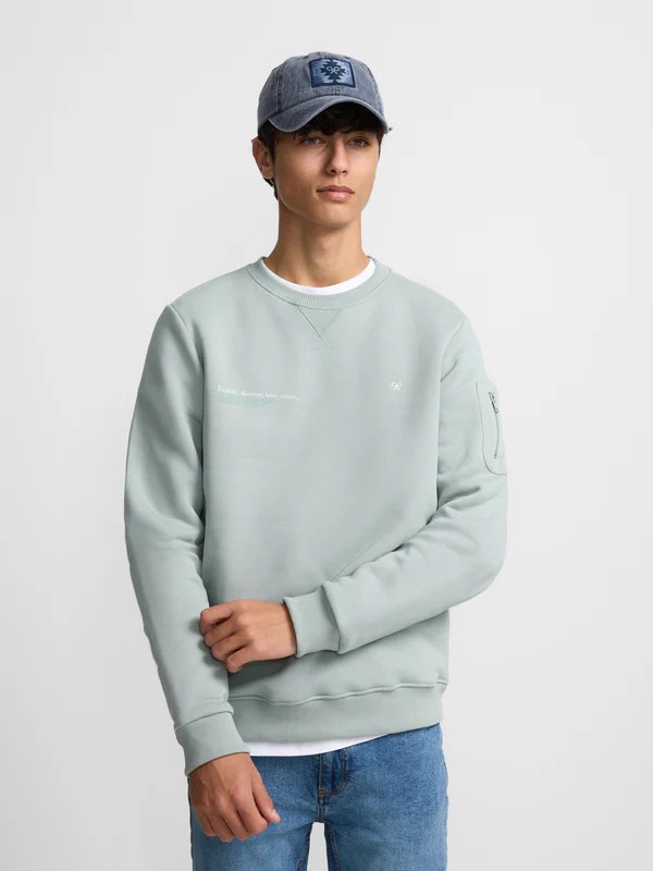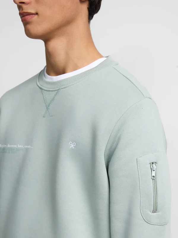 Sudadera confeccionada en mezcla de algodón de corte Regular fit. Presenta cuello redondo y manga larga. Cuenta con bolsillo de cierre con cremallera en la manga, bordado de raquetas y print de letras en el torso. Fabricado en Portugal.